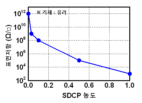 수용성 및 알코올 가용성 고 전도성 고분자로 자가 도핑 가능한 PEDOT 유도체입니다. 분산제 없이 수용성 및 알코올에 높은 가용성을 띄는 SDCP는 유·무기 소재와 접착력이 우수하며 기능성 코팅소재/점착제/수지류와의 상용성 또한 우수합니다. 핵심적으로 이러한 SDCP는 높은 전도성과 유기 물질의 특성 그리고 자가 도핑성으로 인해 투명성, 적외선 차폐성, 열 차단성, 신뢰성, 장기 내구성이 우수하다는 장점을 보입니다.
